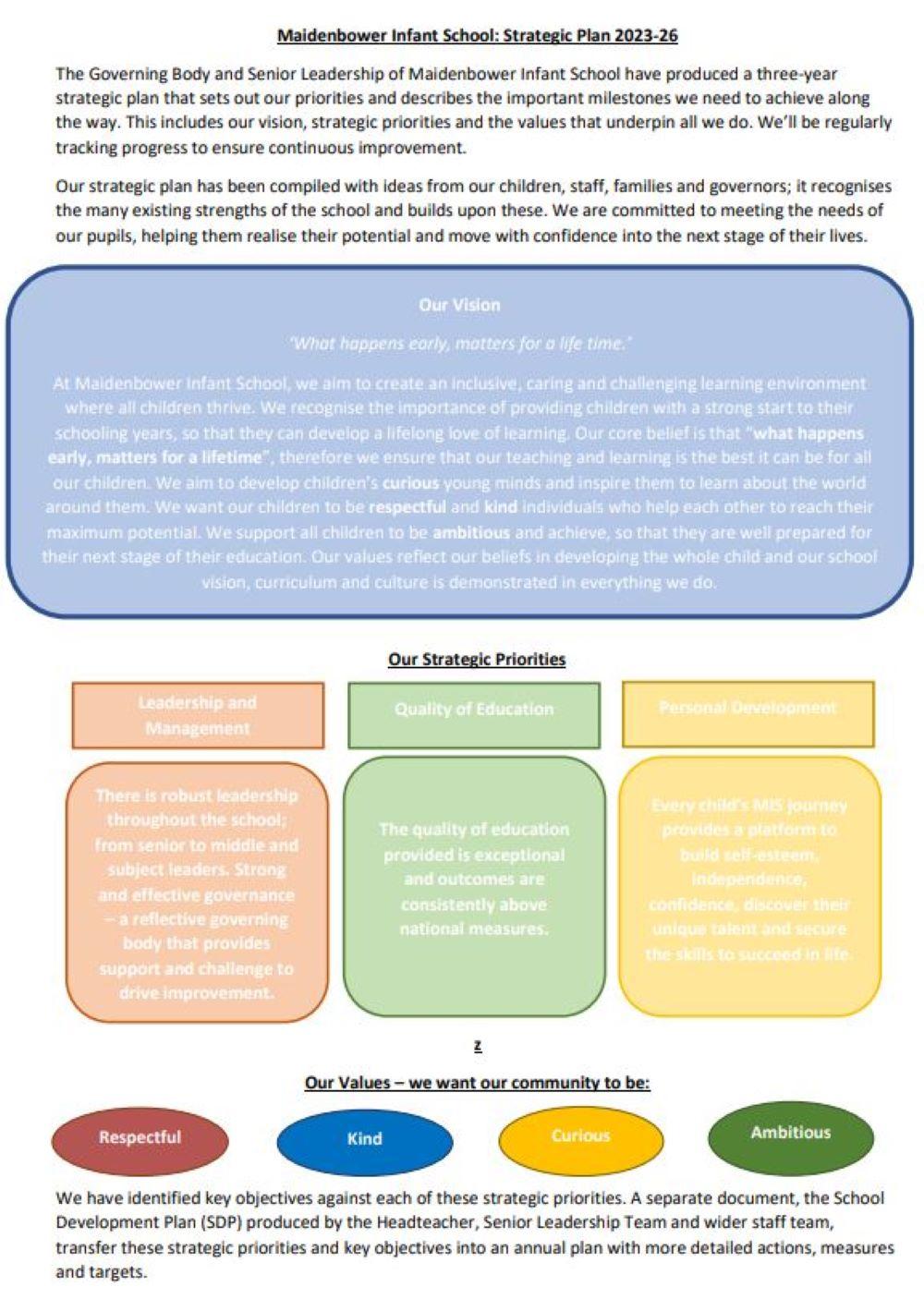 Our journey of growth extends beyond the present academic year. Staff and Governors have collaborated to establish critical milestones for the next three years.